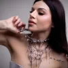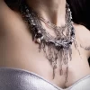 This statement necklace blends layered chains with pearl and spike accents for a striking look. Designed to sit beautifully on the collarbone, it adds edge without feeling heavy.