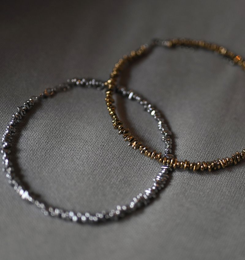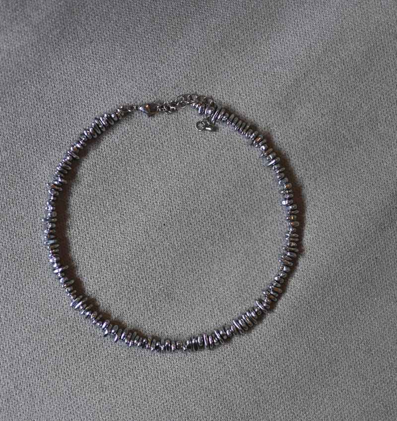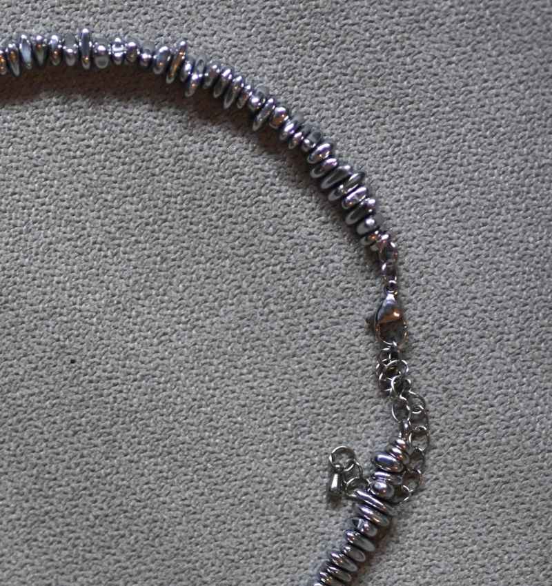 | beads: | Natural silver-dyed Hematite |