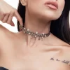 Wear it on its own as a bold accent, or layer it with minimal metal collars for a strong, contemporary look. Perfect for city outfits, evening styles, and confident everyday wear.