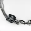 The stone hangs from a strong stainless steel chain that adds a modern, edgy contrast to the raw crystal.